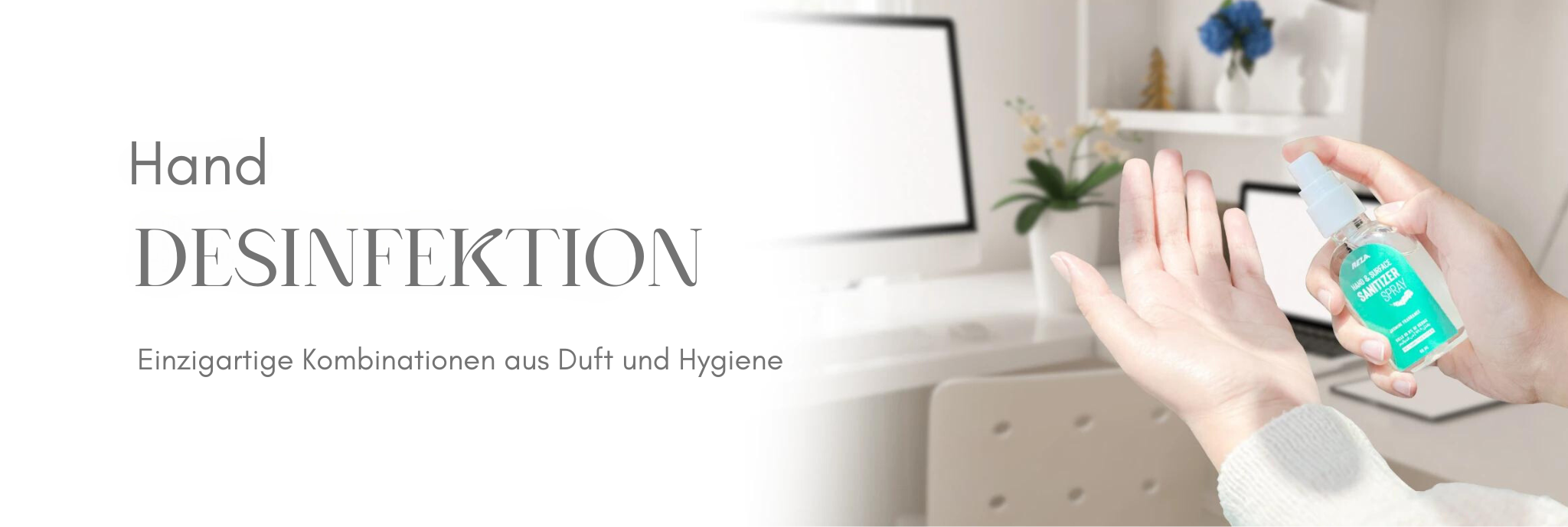 Unsere Handdesinfektionsmittel vereinen wirksamen Schutz und wohltuende Düfte in praktischen, tragbaren Größen. Perfekt für unterwegs, bieten sie zuverlässigen Schutz gegen 99,9 % der Keime und sorgen gleichzeitig für ein angenehmes Dufterlebnis.