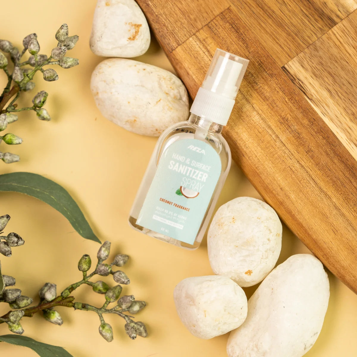 Alkoholbasierte Duft-Sanitärspray zur Reinigung von Händen und Oberflächen. Passt leicht in die Tasche oder Handtasche. Enthält Alkohol Denat, Wasser, Kokosduft und Glycerin. Tötet 99,9 % der Keime ab. Nur zur äußerlichen Anwendung. 60 ml Flasche.