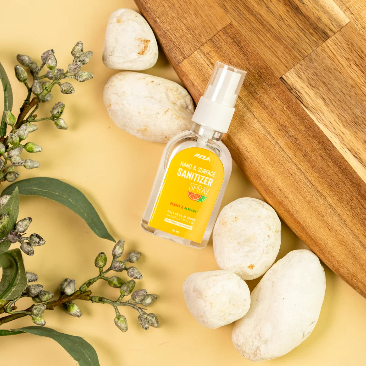 Alkoholbasierter, duftender Desinfektionsspray zur Reinigung von Händen und Oberflächen. Passt leicht in die Tasche oder Handtasche. Hergestellt aus Alkohol Denat, Aqua, Zitrusduft und Glycerin. Tötet 99,9% der Keime. Nur zur äußeren Anwendung. 60ml Flasche.